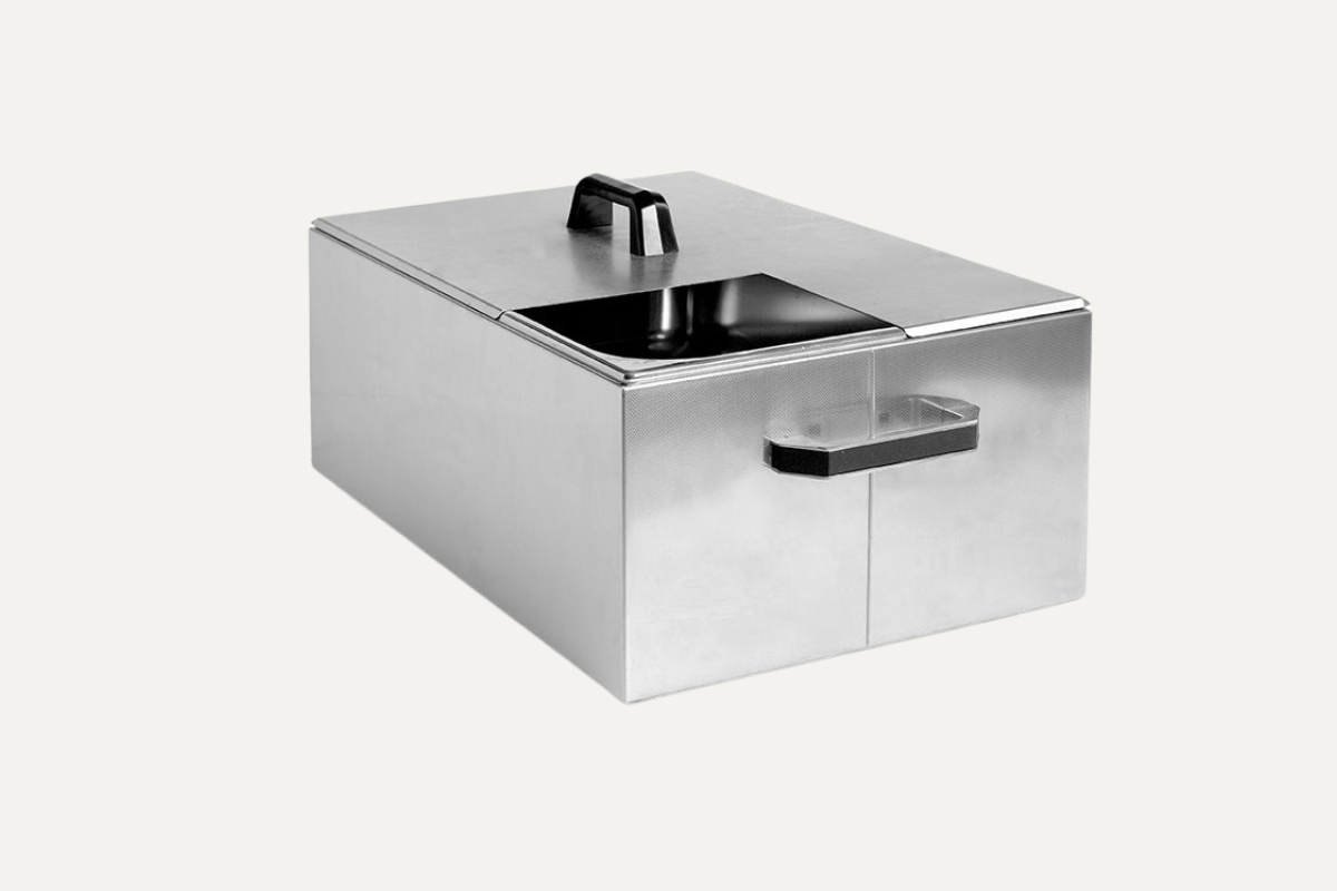 Cubeta térmica de acero inoxidable que nos permite estabilizar la temperatura en todo el contenedor y lograr que las cocciones sean completamente uniformes.